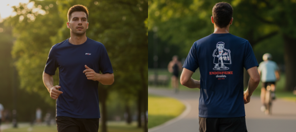 La tenue running de l'athlète est élaborée dans des matières techniques adaptés à la performance et coupé de façon à procurer un confort optimal dans l'action.