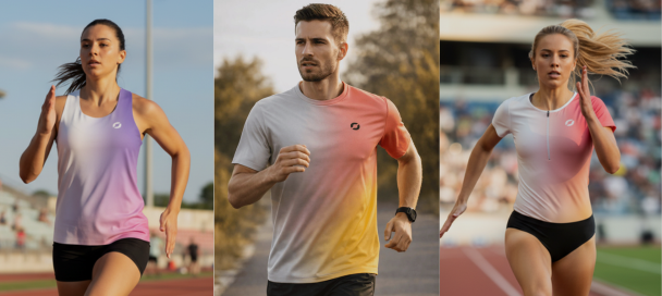T-shirt en matière technique ou débardeur, le choix appartient à l'athlète en fonction des circonstances et des conditions atmosphériques. Dans tous les cas, les tissus utilisés assurent un transfert de la transpiration