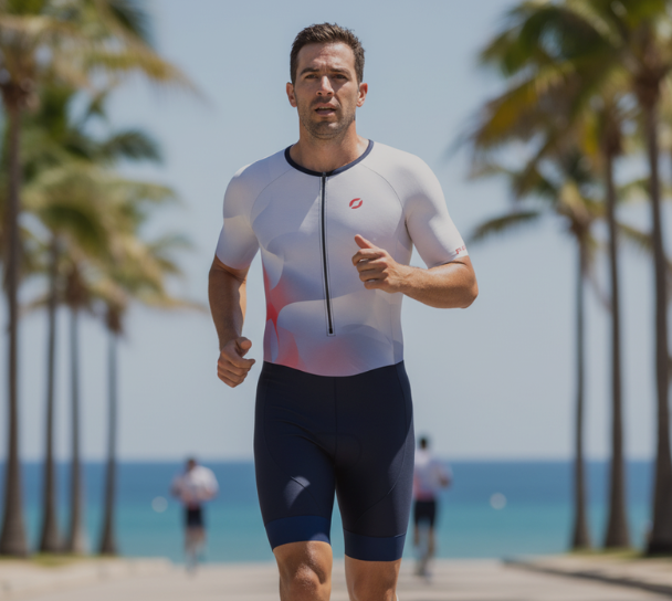 Avec une trifonction manches courtes ou sans manches, le triathlète bénéficie d’une tenue pensée pour répondre aux contraintes des trois disciplines.