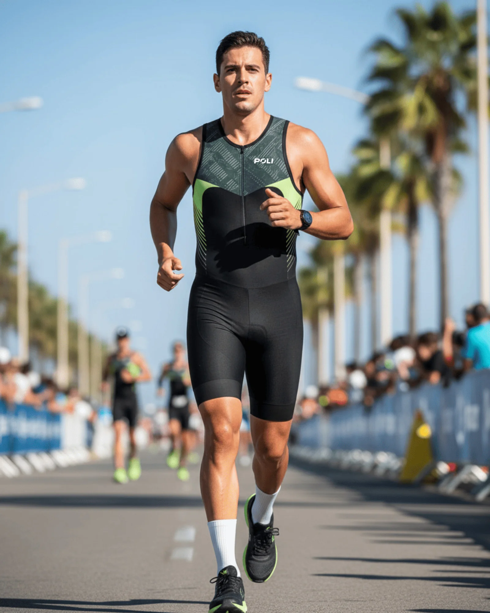 La trifonction sans manches pour homme de la collection HYDRIS allie confort et performance. Fabriquée en Lycra Sport® 210g extensible, elle dispose d'un traitement DWR® sur la partie buste pour un séchage rapide. Son dos et ses poches aérées offrent légèreté et évacuation efficace de l’eau. Appréciée par de nombreux triathlètes pour son excellent rapport qualité/prix, cette combinaison deviendra une seconde peau incontournable.