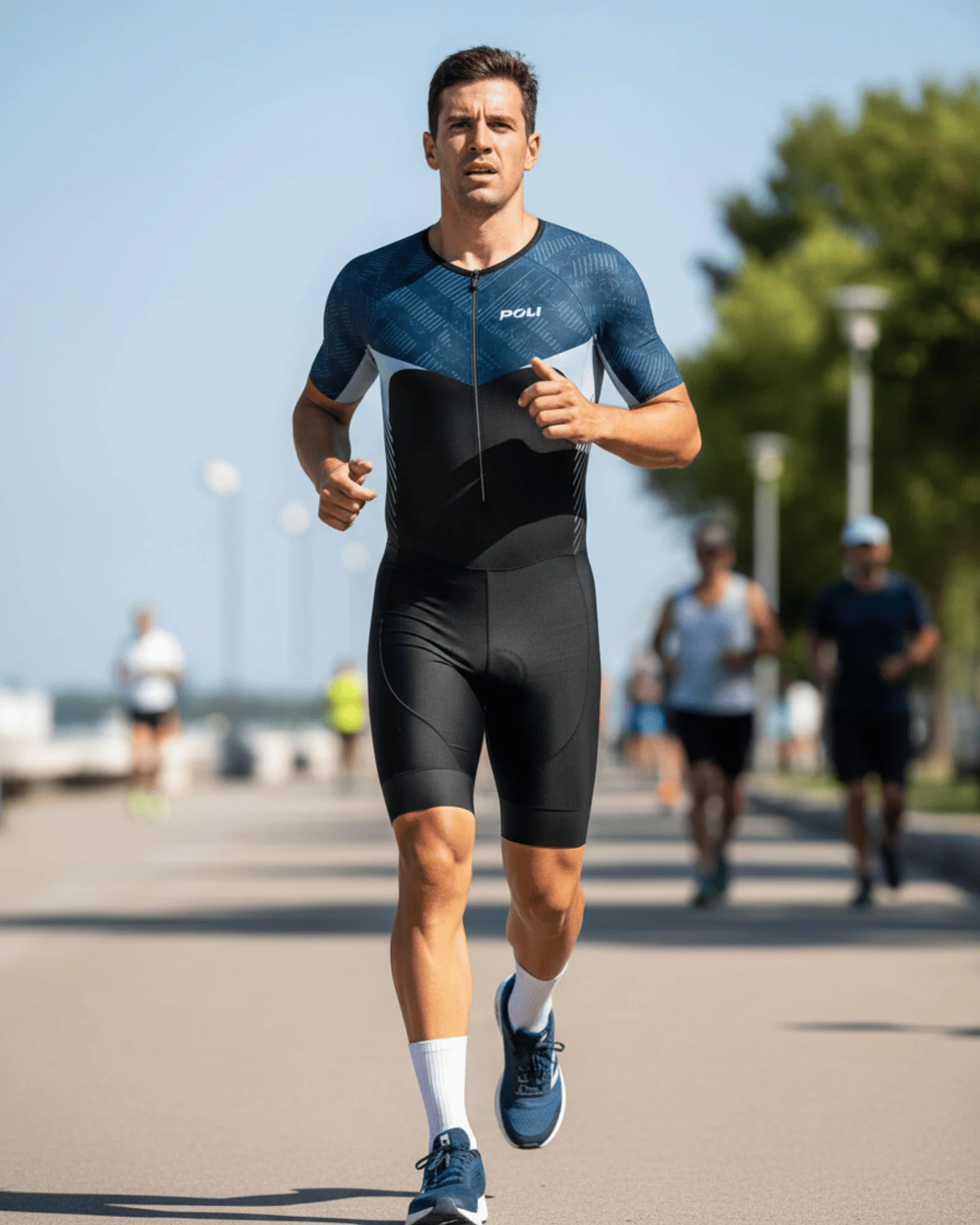 La trifonction unisexe à manches courtes de la collection HYDRIS est spécialement conçue pour les triathlètes. Fabriquée en Lycra Sport® 210g avec un traitement déperlant DWR, elle assure un séchage ultra-rapide après la natation. Sa matière technique, souple et extensible, offre un confort optimal et une excellente aérodynamie, permettant à chaque athlète de donner le meilleur de soi-même.