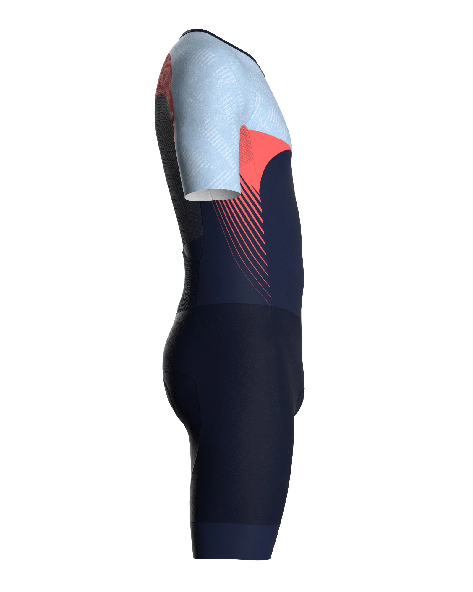 La trifonction unisexe à manches courtes de la collection HYDRIS est spécialement conçue pour les triathlètes. Fabriquée en Lycra Sport® 210g avec un traitement déperlant DWR, elle assure un séchage ultra-rapide après la natation. Sa matière technique, souple et extensible, offre un confort optimal et une excellente aérodynamie, permettant à chaque athlète de donner le meilleur de soi-même.