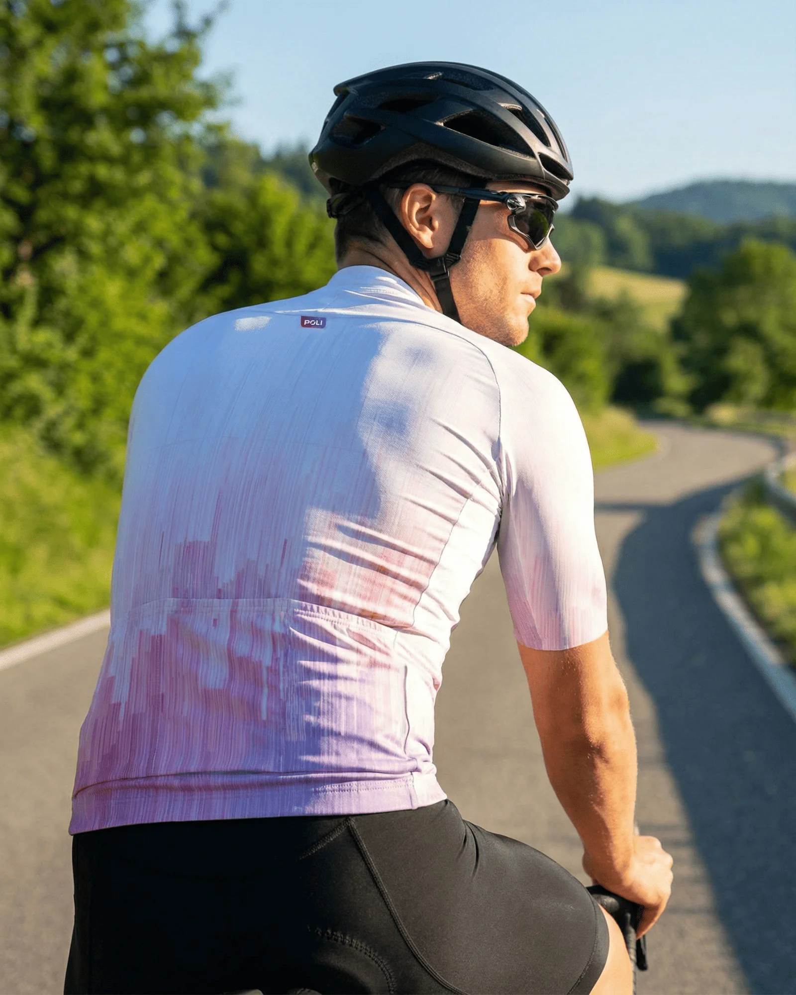• Association de 4 matières : Jacquard strié aux manches coupées bord franc et poches arrière + Maille Light Dry sur le devant et côtés + Maille lisse Microfresh sur le dos avec protection UV 50+ + Empiècements embossés avec coupe bord franc