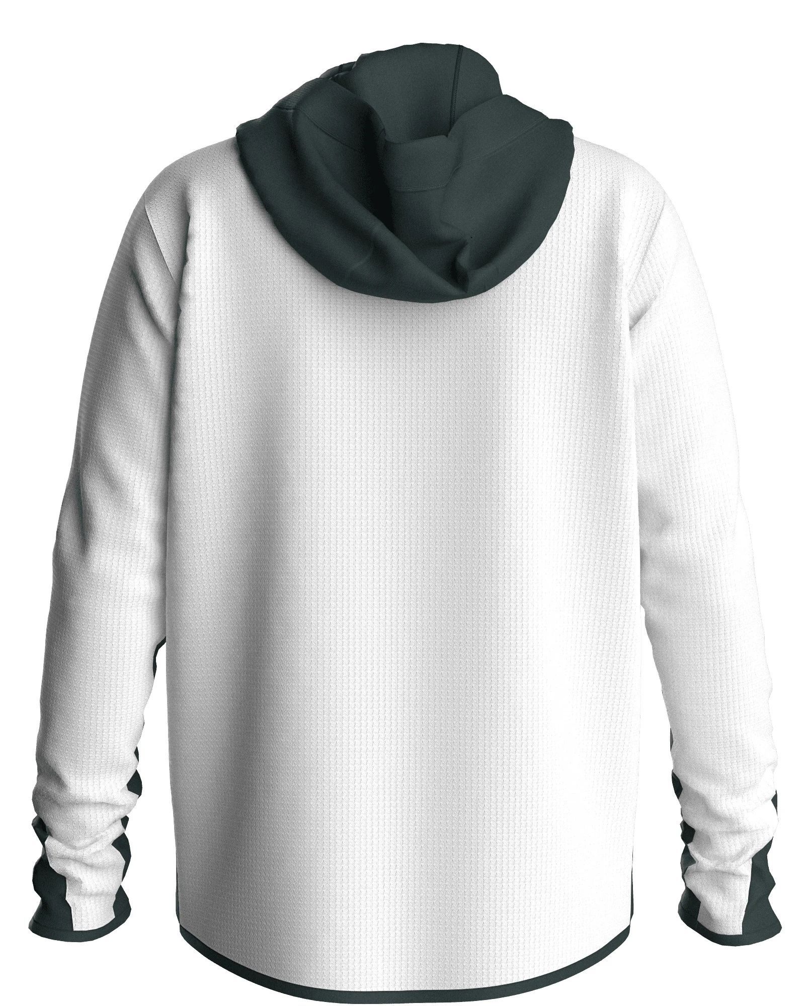 La veste à capuche technique unisexe PIERRA est idéale aussi bien pour vos entraînements que pour vos phases de récupération. Avec sa coupe regular adaptée à toutes les morphologies et sa maille technique molletonnée à l’intérieur, elle allie chaleur, confort et respirabilité. Pratique, elle dispose de deux poches latérales et d’un zip intégral, tandis que sa capuche couvrant le cou et ses finitions bas et poignets en colletage assurent une protection optimale. Personnalisable sur le haut devant, le dessus des manches et le dos, elle vous permet d’afficher fièrement les couleurs de votre club, sur le terrain comme au quotidien.