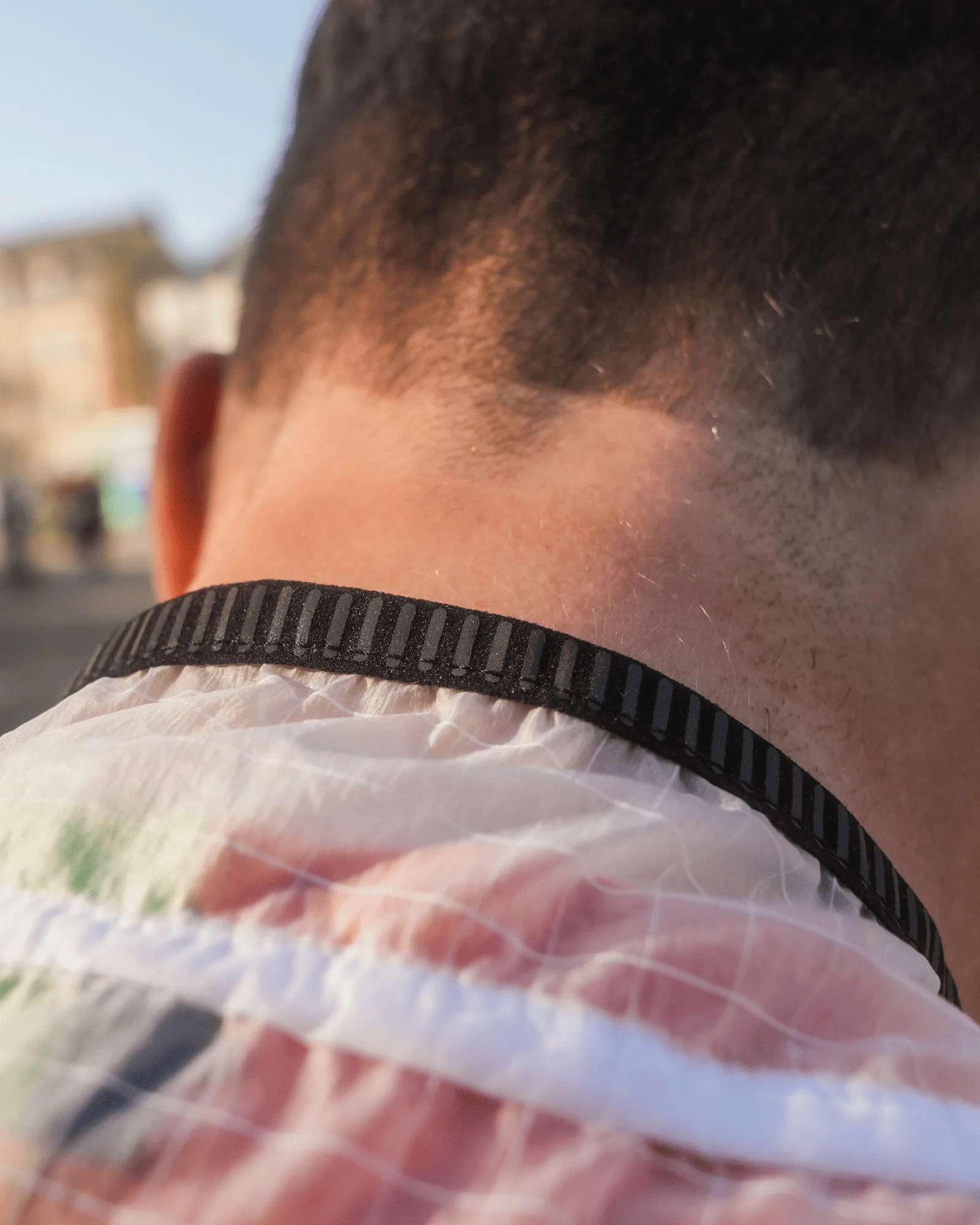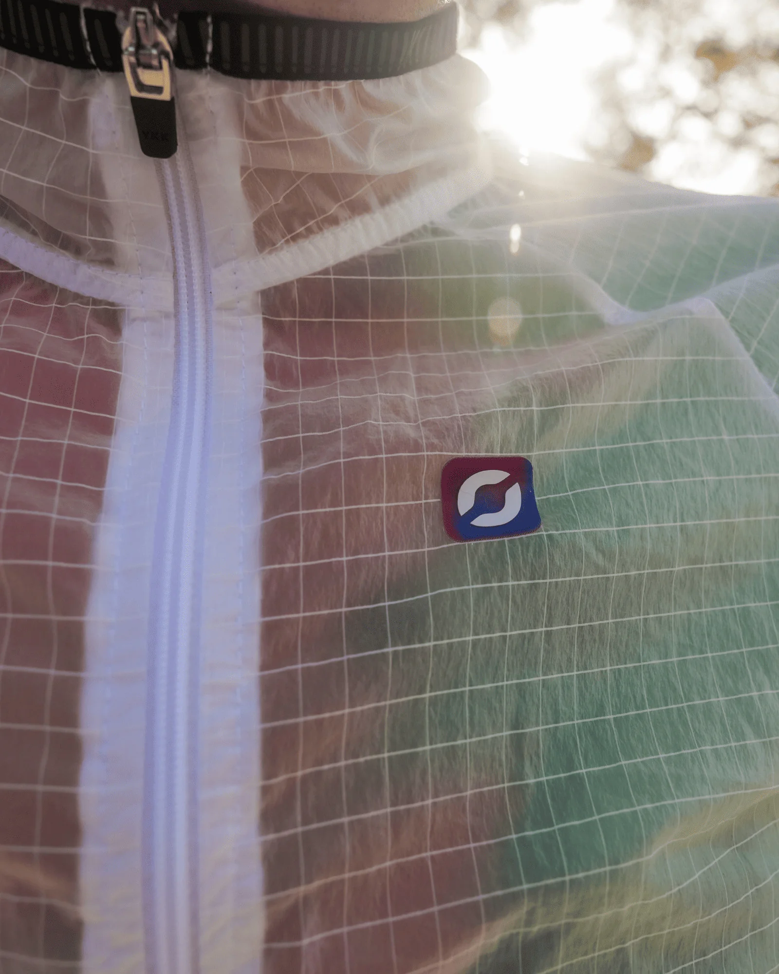 • Association de 2 matières : Coupe-vent transparent avec structure type Ripstop déperlant + Maille aérée sur les côtés et à l’arrière des manches