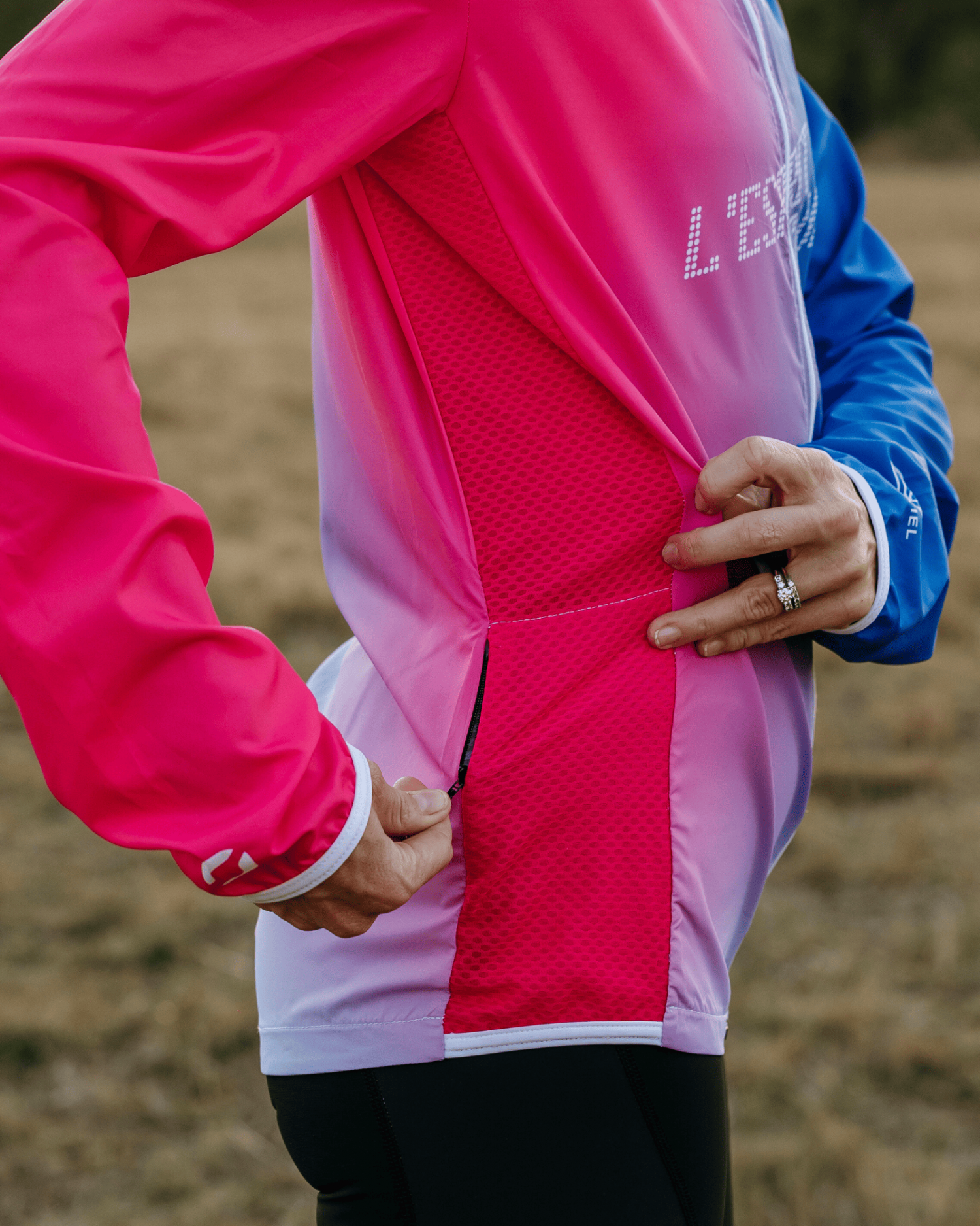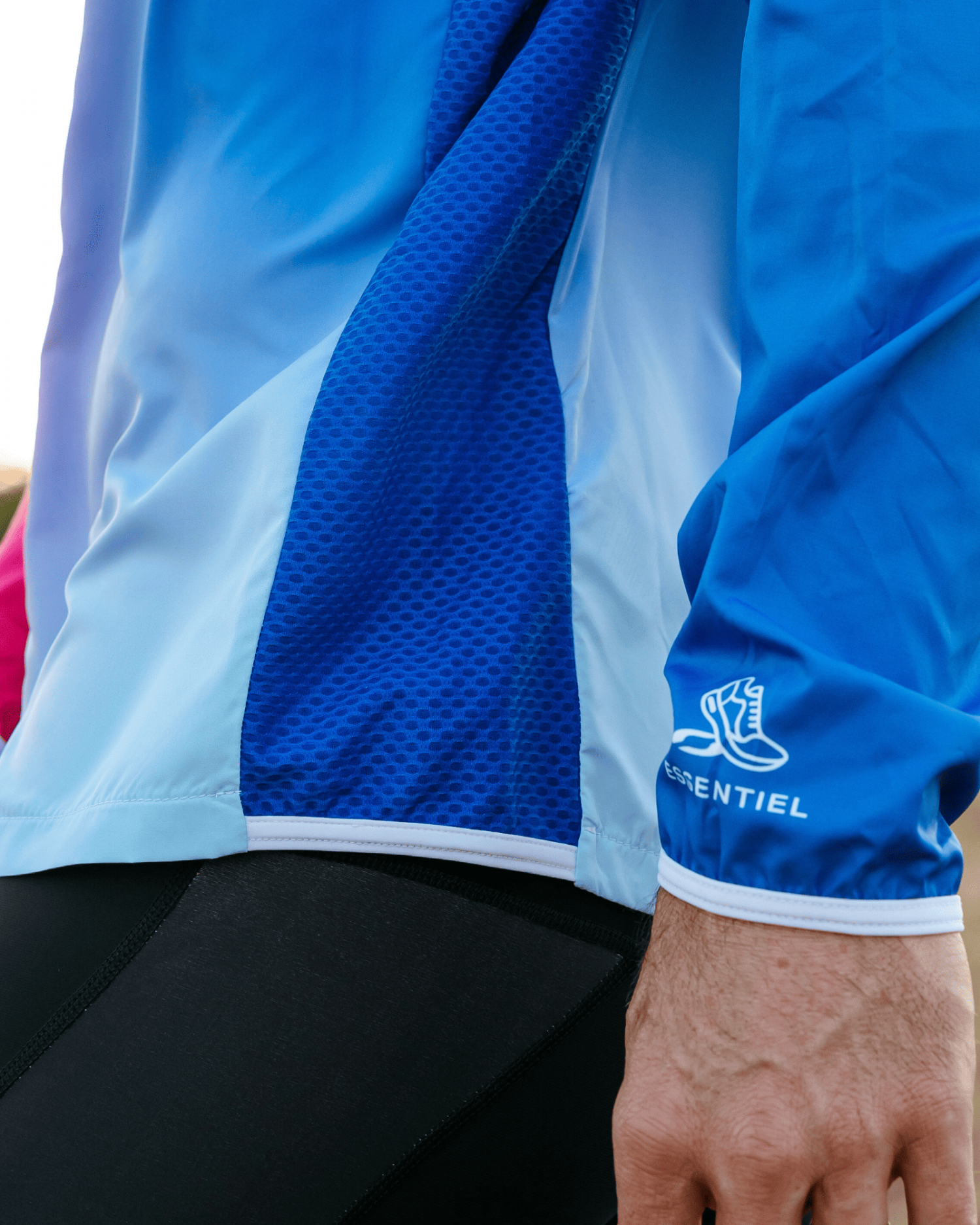 • Association de 2 matières : Coupe-vent microfibre avec traitement DWR + Maille aérée sur les côtés