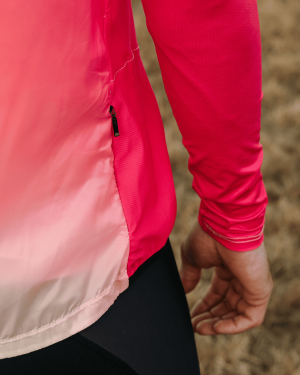 - Association de 2 matières : Coupe-vent microfibre ultra-léger avec traitement DWR + Maille aérée extensible sur les côtés