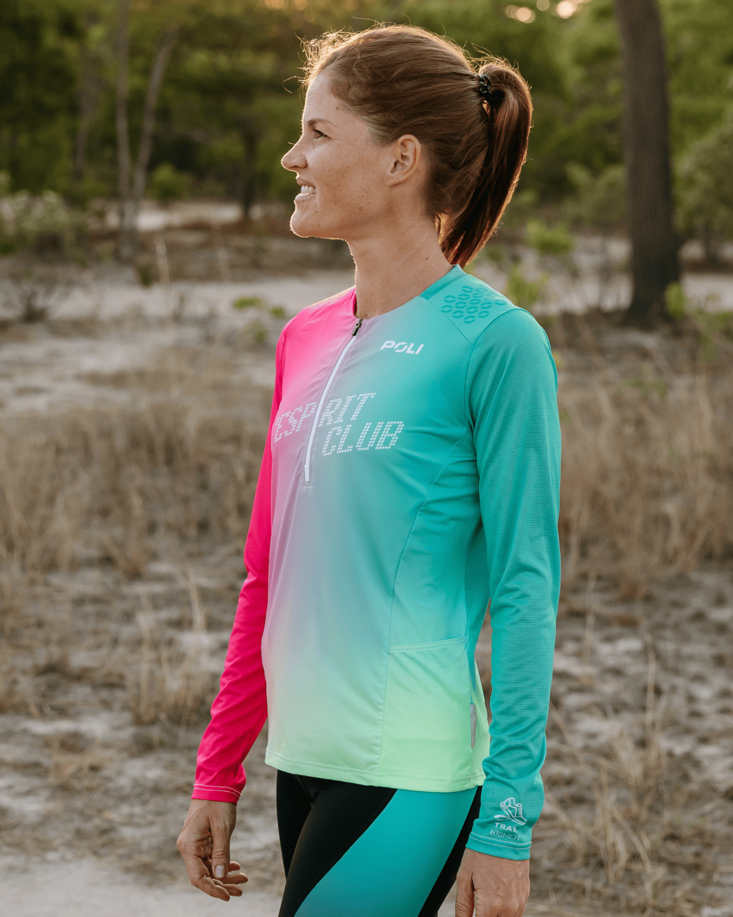 Le maillot de trail manches longues pour femme LYNN, de la gamme Performance, combine technicité et confort. Confectionné dans deux matières légères et résistantes à l’abrasion, il présente une coupe regular et un zip autobloquant de 20 cm pour une ventilation maîtrisée. Ses transferts reflex assurent une meilleure visibilité. Grâce aux options de poches et de grip silicone aux épaules, il s’adapte à toutes vos pratiques outdoor : trail, running ou marche.